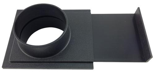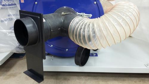 The blast gate has a 100mm quick connection on one side so it can be pressed onto a 100mm outlet or Y-Branch, T-Branch etc without the use of a sleeve. Our 100mm hose can be connected directly onto the other side and secured with a hose clamp, 100HC.