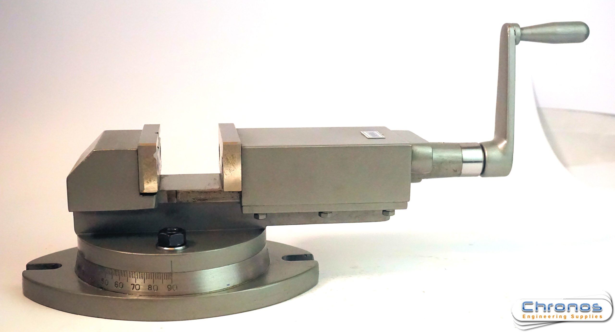 The 360 degree swivel base allows the vice to be set at any angle along with the vertical axis . The jaws are fully hardened and ground with a parallelism of 0.0012″ (30 microns) The hardness of the jaws is 55 +- HRC