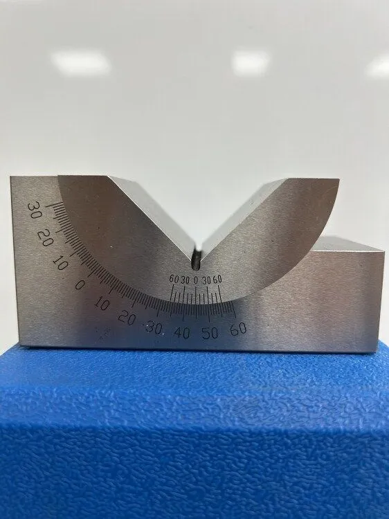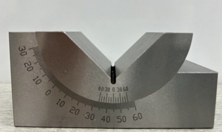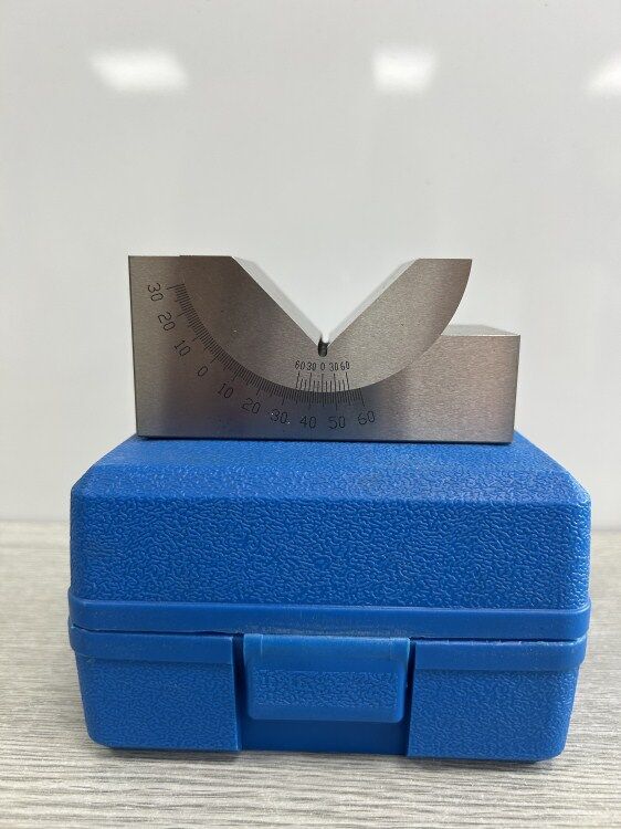 Length:- 102mm, height 48mm, width 46 mm 0-60 deg Adjustable angle – by locking the hex screw. V angle is 90 deg.