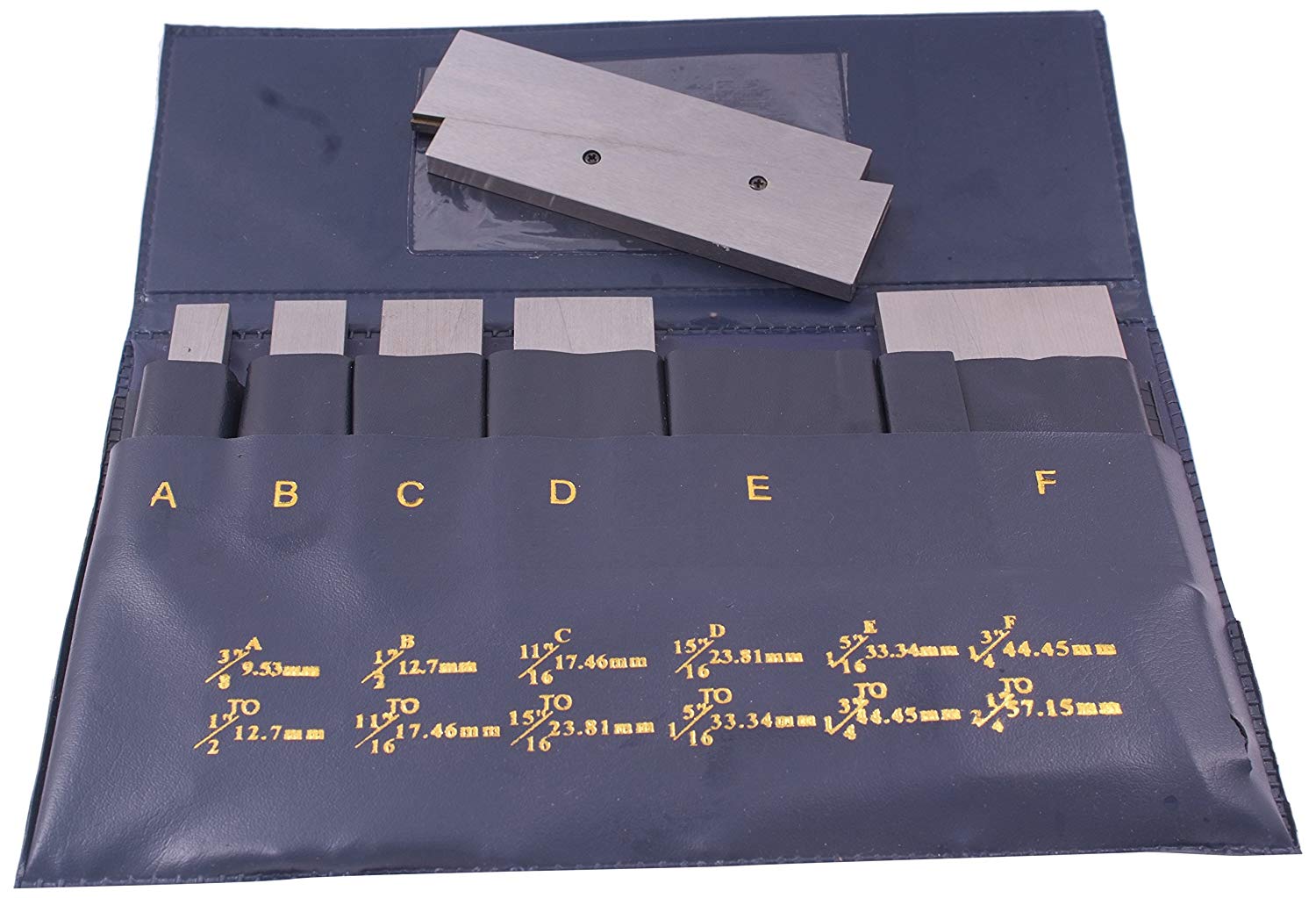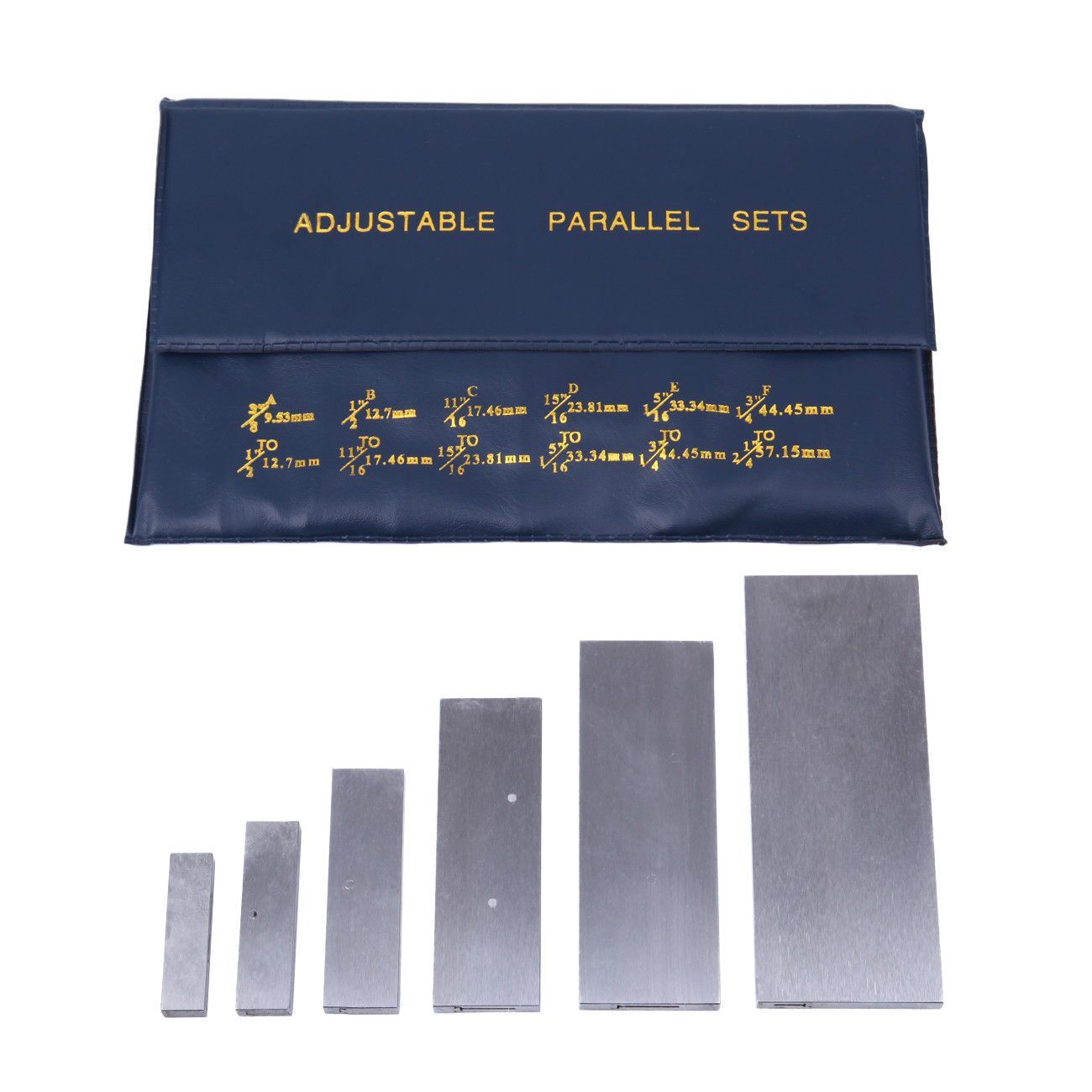 They can also be used in pairs as parallels. Range of this set is 3/8″ – 2 1/4″. Supplied in plastic wallet