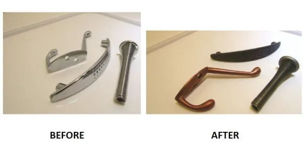 CHROME DEPOSITS OFTEN BEGIN TO FLAKE WITH AGE REVEALING THE METAL UNDERNEATH, WHICH IS USUALLY NICKEL IF ON A FERROUS BASE METAL. THIS NICKEL LAYER IS OFTEN IN GOOD CONDITION AND CAN BE POLISHED TO A VERY HIGH LEVEL. THIS KIT WILL QUICKLY REMOVE ALL OF THE USUALLY THIN CHROME LAYER TO LEAVE JUST THE UNDERLYING METAL READY FOR THE NEXT STAGE OF TREATMENT