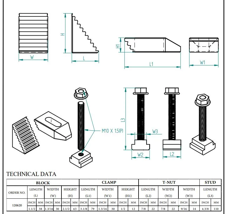 Clamping Set for Lathes , Milling Machines & Rotary Tables (SKU: 120620.)