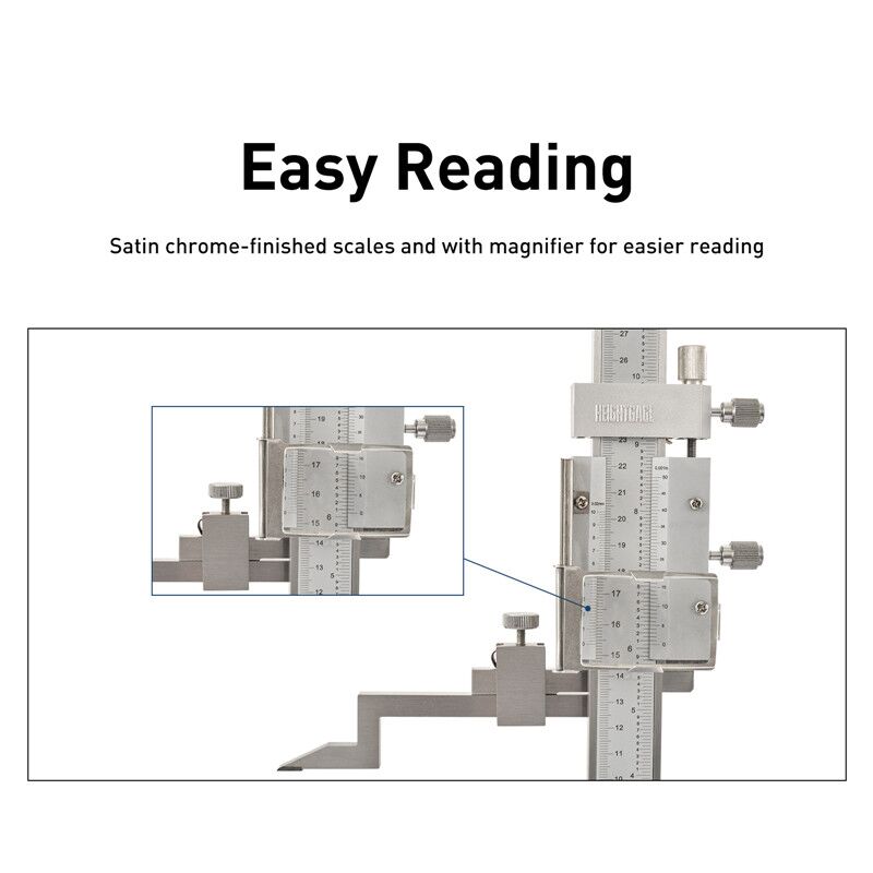 The height gauge is an instrument for dimensional measurement of all kinds of mechanical parts. It is mainly used in the workshop to provide a quick and easy measurement of parts in production.