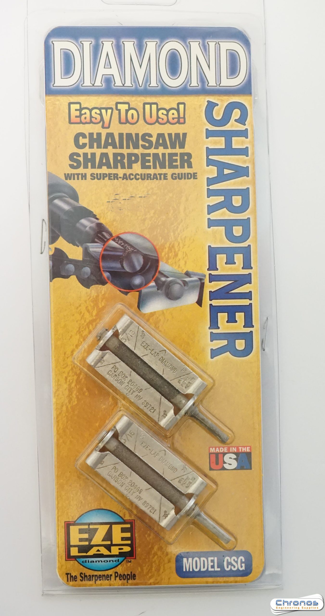 Eze-Lap Diamond Chainsaw Sharpeners allow for precision sharpening with the chain in place. The shaft diameter will not distort, burn or shatter. The hook angle will stay the same. Sharpen any cutting teeth including carbides with a 1/10th of the force required for normal stones. They last 20 times longer than normal stones