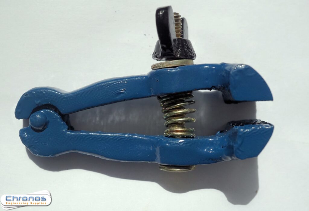The body of this spring type clamp is made of high grade cast iron and can be firmly tightened by hand with the fitted screw. Ideal for holding small jobs.1 1/4″ Jaw width.