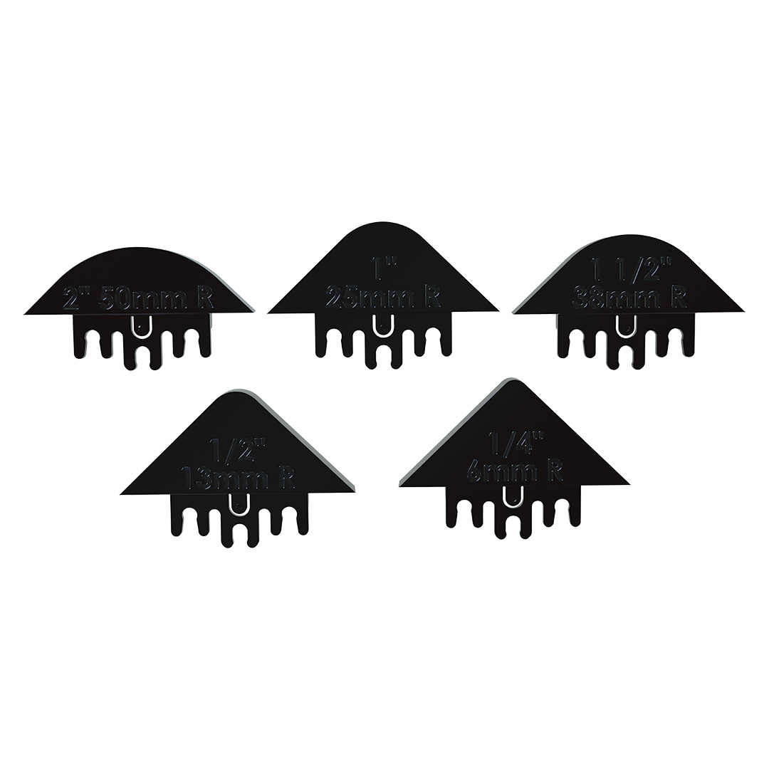• 5 Radius profiles include ¼” (8mm), ½” (13mm), 1″ (25mm), 1-1/2″ (38mm), and 2″ (50mm)