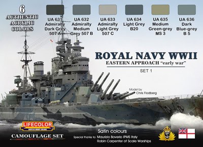 LifeColor Royal Navy WWII Eastern Approach – Early War Paint Set 1 (22ml x 6) [LC-CS33]- SORRY OUT OF STOCK – help is available
