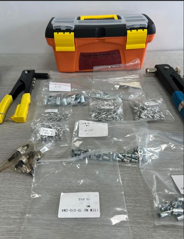 • Nut riveter 50pcs x M3 , 50pcs x M4, 25pcs x M5, 25pcs x M6, 20pcs X M8 carbon steel