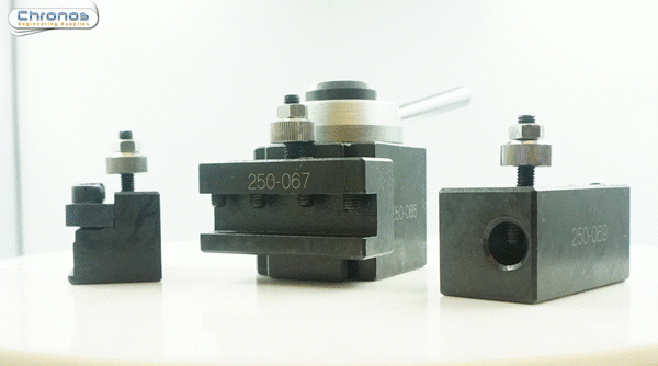 It is fully hardened and ground and the working parts have maximum rigidity and provide chatter free performance. Units are completely sealed for maintenance free operation. Each QC tool post set comes with 3 different styles of tool holders for turning, facing, and boring operations.