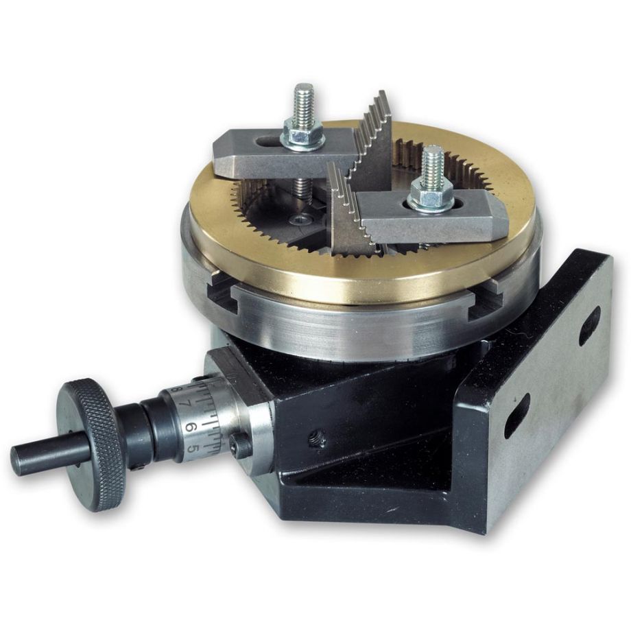 The Proxxon UT 250 Universal dividing attachment can be used vertically or horizontally. It will fit onto compound tables where the distance between the T-slots is 45 to 60mm. It features a worm drive for divisions through 360°. The feed adjustment handwheel is graduated, with a zero-adjustable dial, each revolution equals 10°. The flange of the dividing attachment is the same as that of the spindle of the PD 250/E lathe, allowing use of the 3 jaw chuck from the lathe.