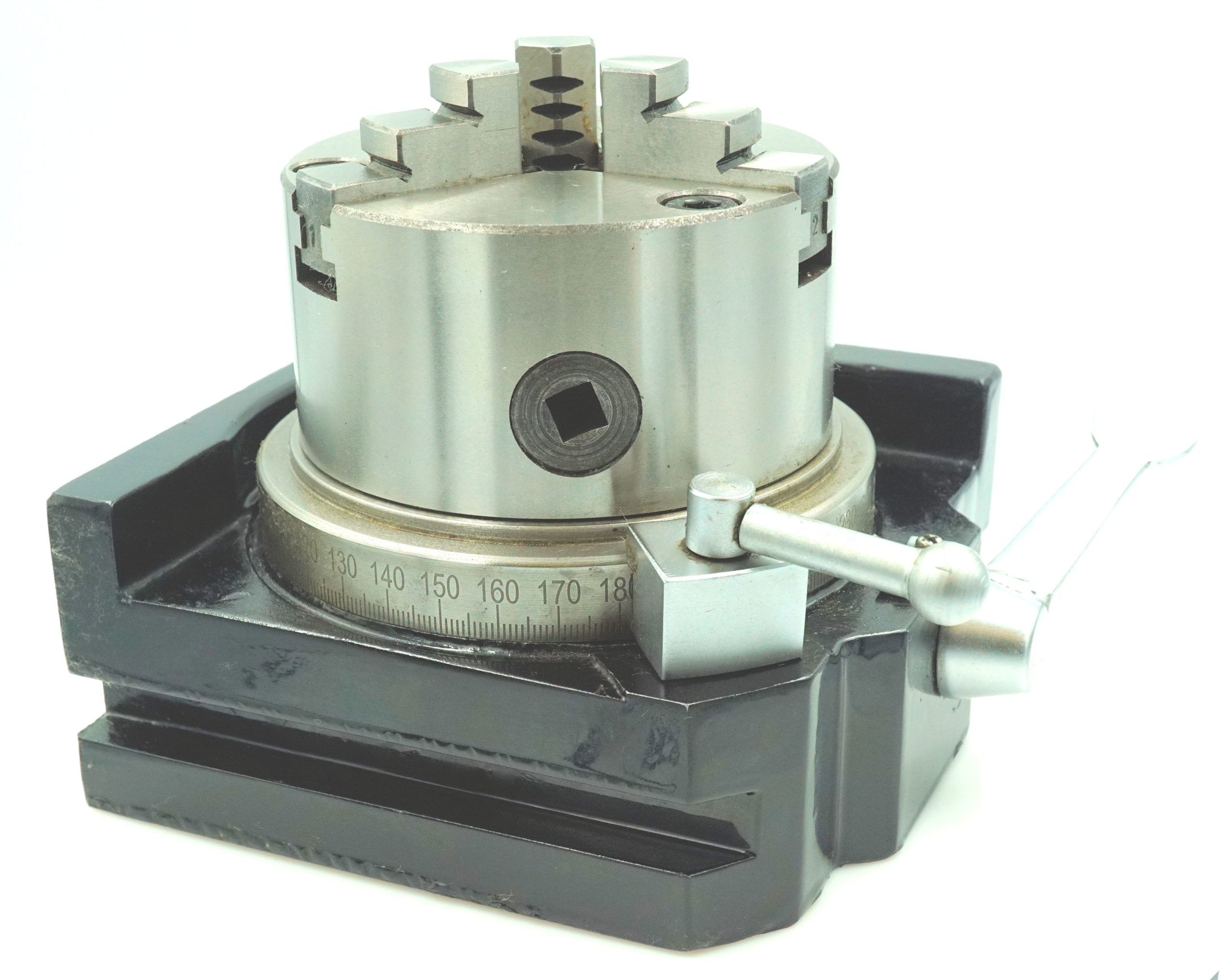 They employ a simple, rapid operation with a table scale of 1 deg for angular indexing.. The unit can be used in either the vertical or horizontal plane. Each unit is fitted with a 3 jaw chuck.