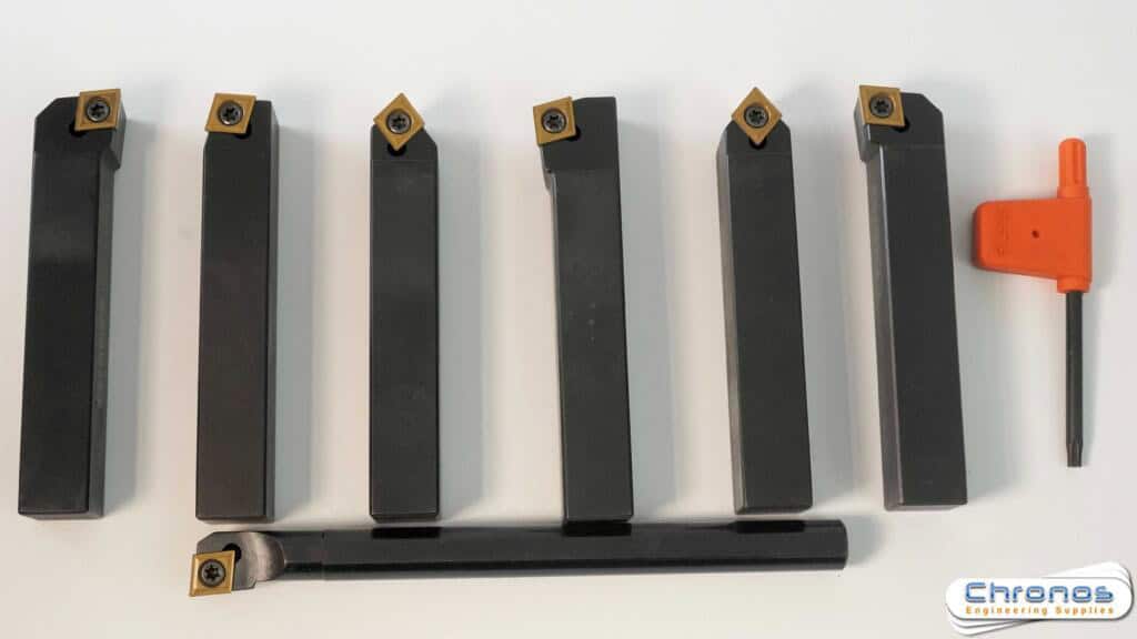 We have selected this set of Turning Tools and Boring Bar carefully to cover a wide range of turning applications using a single type of indexable carbide insert. Tools are 100mm Long