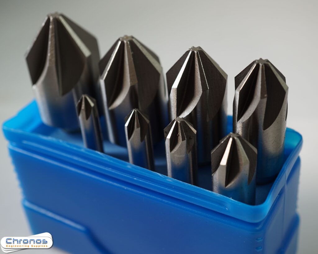 8Pc Set of HSS 6 Flute Chatterless Countersinks- SORRY OUT OF STOCK – help is available