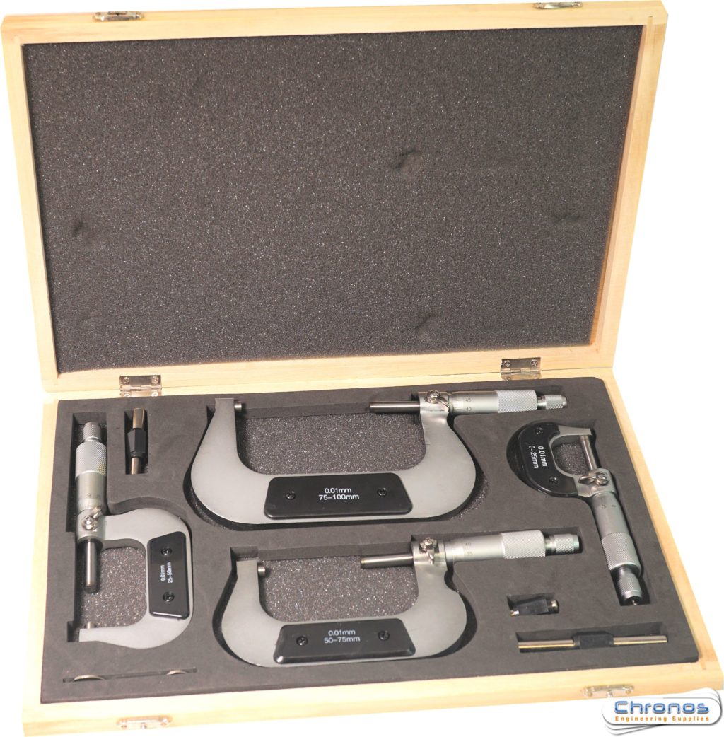 Set of Four Micrometers – Metric 0-100mm- SORRY OUT OF STOCK