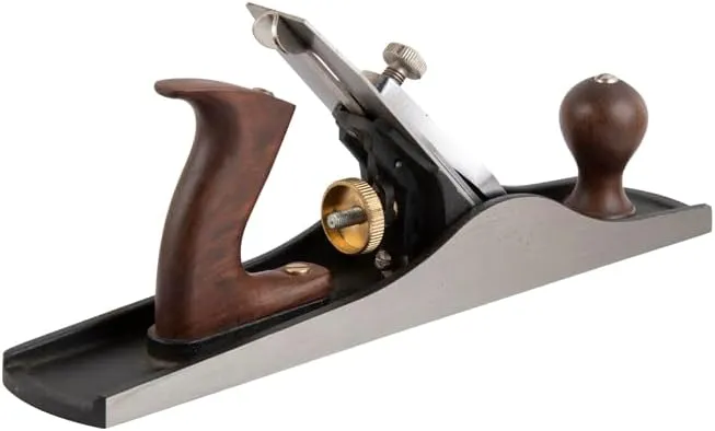 As the name suggests a very good plane for general smoothing and final finishing work. A must for every workshop. The sole of the plane isfinish as well as a serrated for a smoother action on damp or resiny lumber. The long sole of the planes ensure good results for flattening large surfaces without any bumps and valleys. The planes have a ductile cast iron body which is fully stress relived and carbon steel blades.